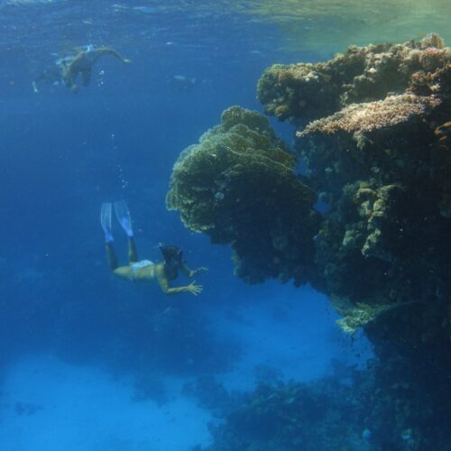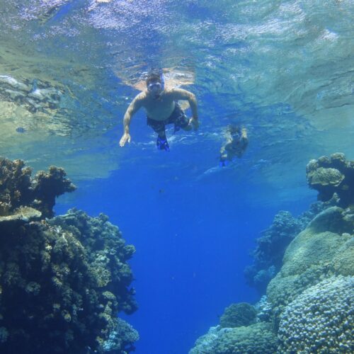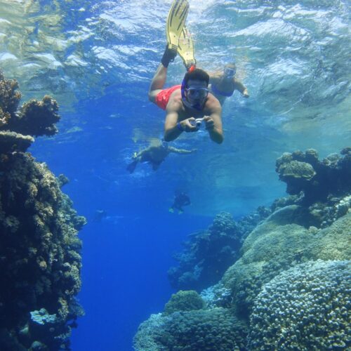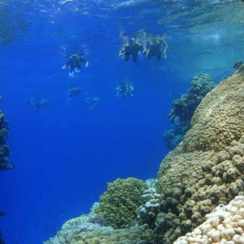 Beim ersten Stopp entdeckt Ihr die unglaubliche Vielfalt des Roten Meeres. Euer Guide teilt Euch in kleine Gruppen ein. So könnt Ihr entspannt die bunten Korallenriffe erkunden und die faszinierende Unterwasserwelt genießen.