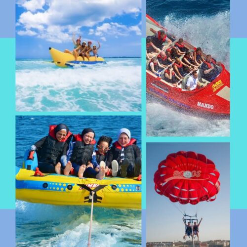 Erlebt pures Adrenalin, Freiheit und Spaß bei unserem Parasailing Plus Abenteuer in Hurghada! Schwebt über dem glitzernden Roten Meer, dreht Euch im wilden Twister und rast über die Wellen beim Banana- oder Tube-Ride – alles in einem unvergesslichen Erlebnis!